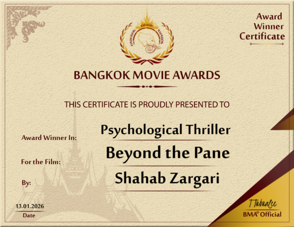 “Beyond the Pane” wins Best Psychological Thriller at Bangkok Movie Awards 2026! A huge congratulations to the cast and crew of Beyond the Pane!! winston2026-01-16T18:03:02+00:00 Related Posts Beyond the Pane Cleans House at SFAAF in Chile! Beyond the Pane wins Best Original Score Award at the 16th Season of the Anatolia International Film Festival Beyond the Pane gets another Special Mention! Honorable Mention at the Asian Independent Film Festival Ruined Earth to Screen in the UK at Two Festivals in 2025